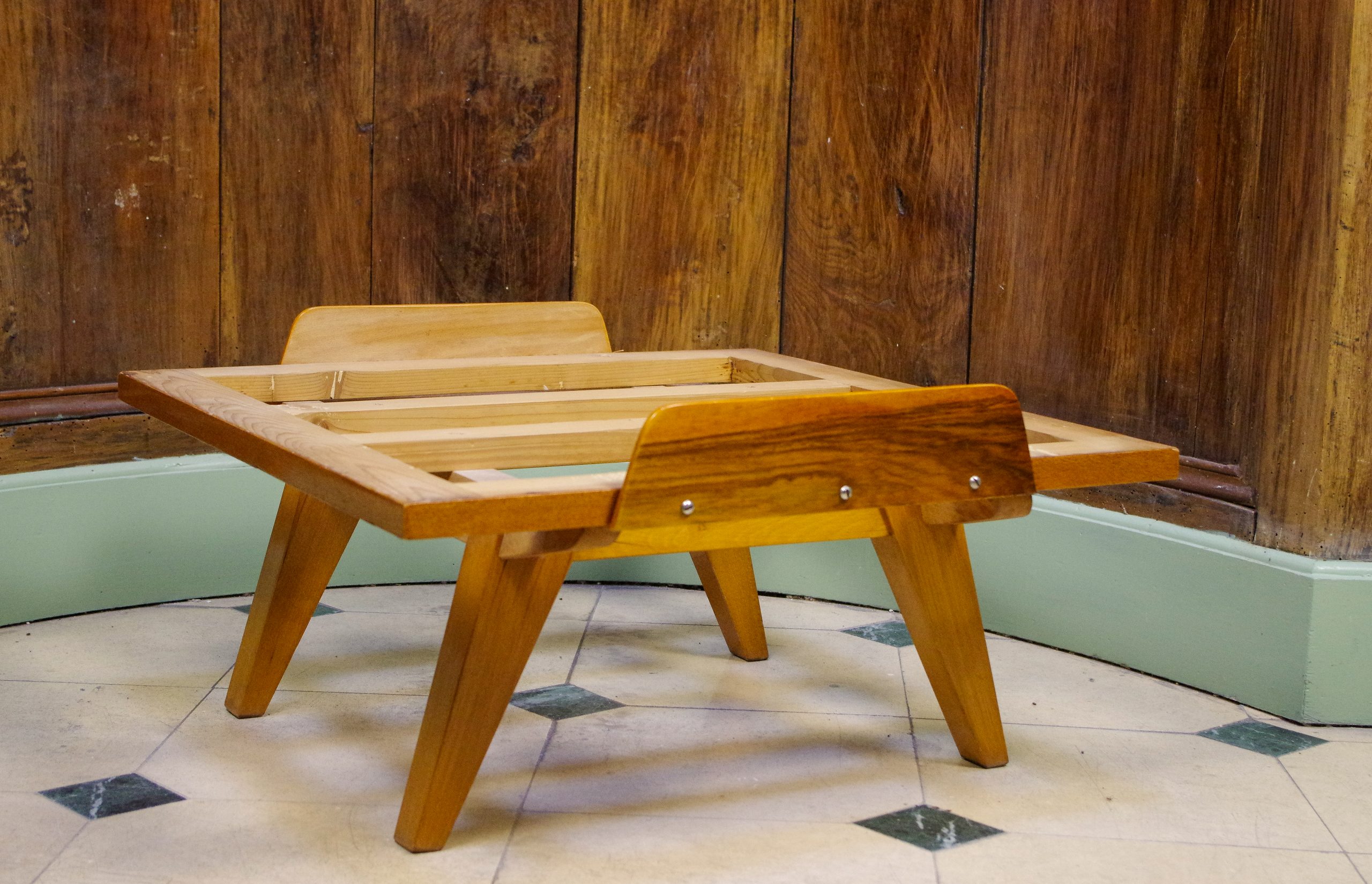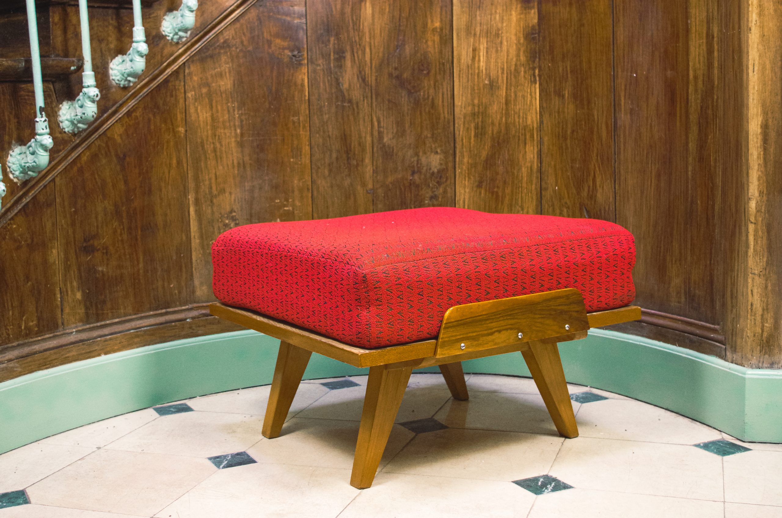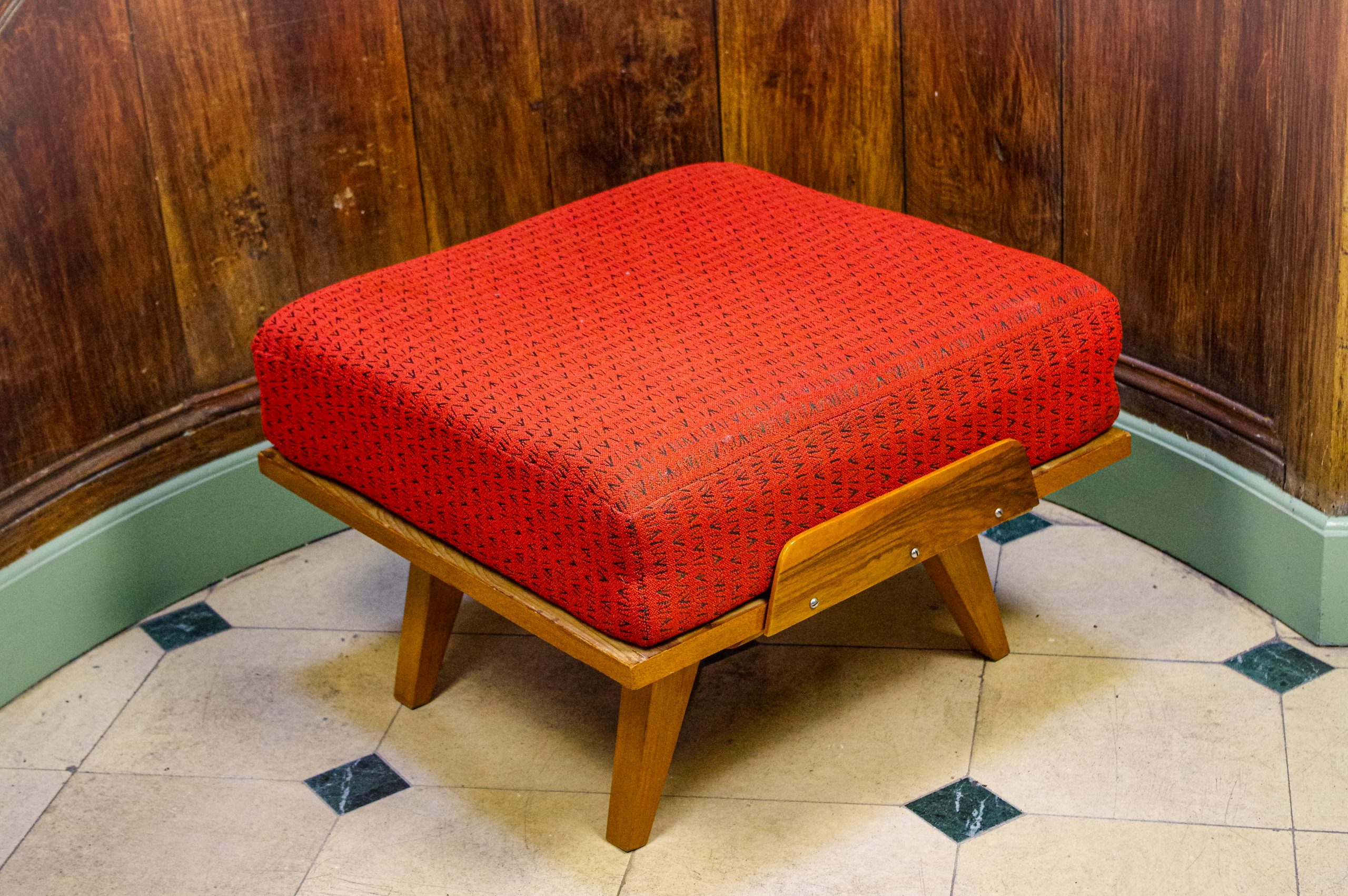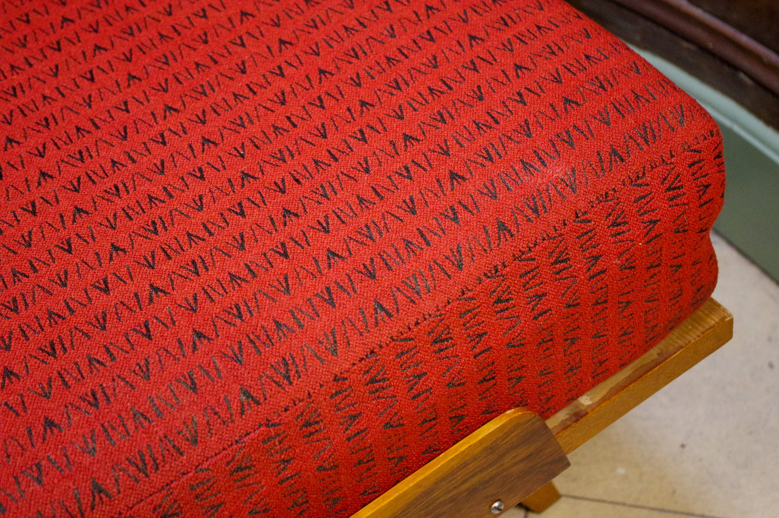 Grand ottoman vintage dessiné par Frantisek Jirak. Il a été fabriqué dans les années 1960 en Tchécoslovaquie. Cet ottoman fait partie, à l’origine, d’un canapé. Il est utilisé pour créer un canapé de forme L. Cependant, tout seul, cet ottoman avec sa grande taille peut servir d’un siège, d’un repose pied ou d’une table basse. Il est composé d’une structure en bois et une épaisse assise en mousse et en tissu. Celui-ci est d’origine et en bel état. La structure en bois est stable.